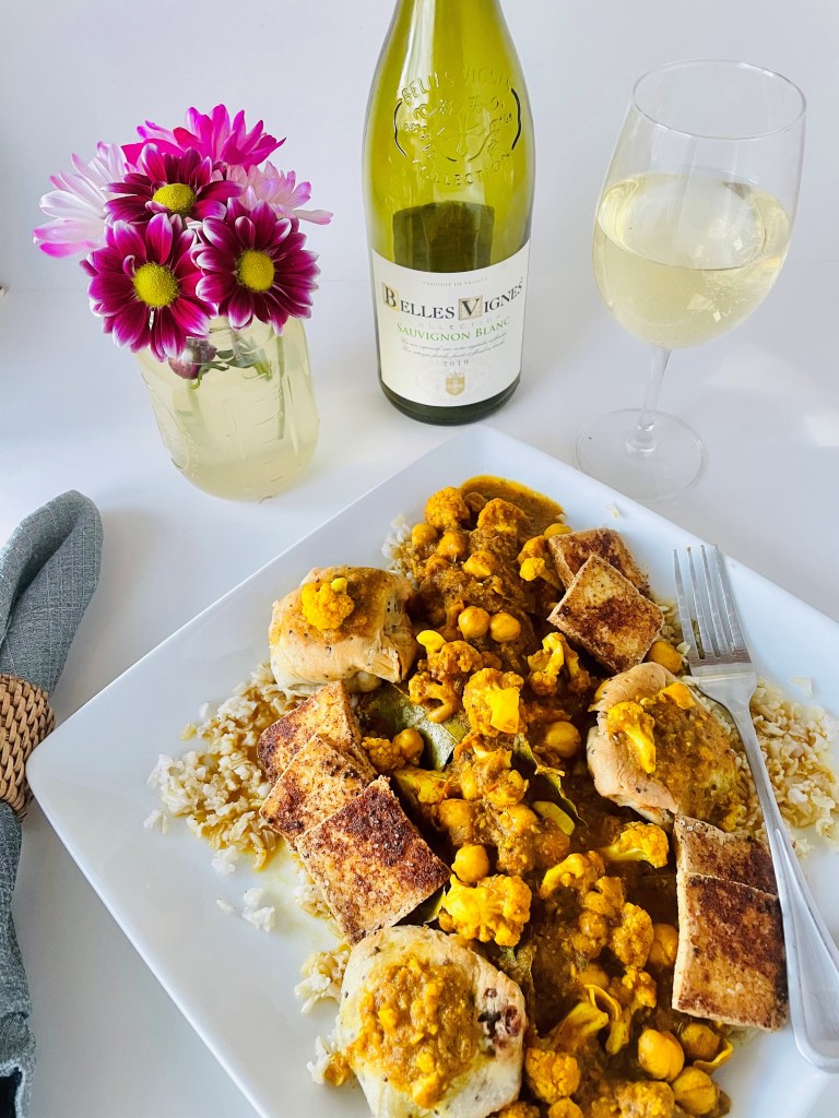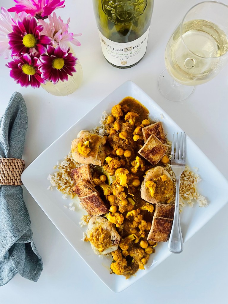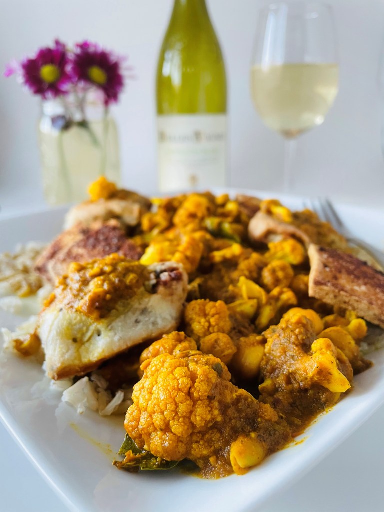Thanks to a good friend of mine who has a ton of experience in making meals like this, I had the knowledge and creativity to get started on the tikka masala part of this dinner. With just a bit more garlic, a red onion, tomatoes, cauliflower, and chickpeas – plus the wonderful number of spices including the turmeric, garam masala, coriander, cumin, bay leaves, mustard seeds, fennel seeds, salt, pepper, and just enough chili powder to take the edge off. Using these spices makes me want to buy a spice box for them to keep them all together. I couldn’t believe how intense they all stood out, especially with all of the veggies that they paired with.