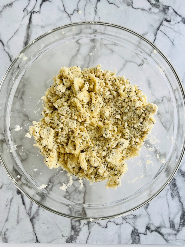1 tablespoon at a time, dump in the avocado oil and get your hands dirty by hand mixing the dough after each tablespoon.