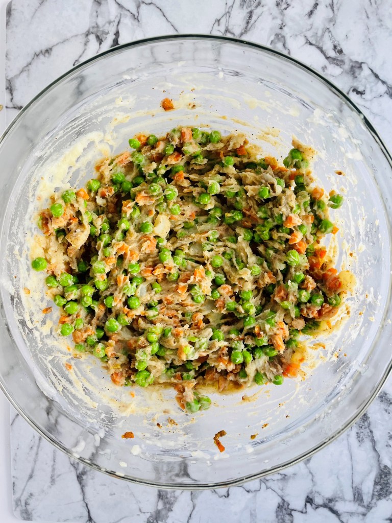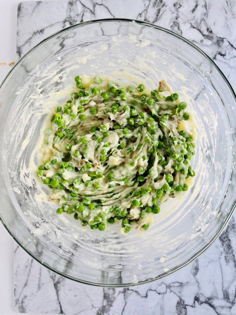 If you are usng frozen peas,, give those guys a good boil in some water as well.