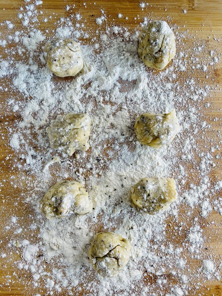 The flour was much easier than you’d think – only featuring some all purpose flour, mustard seeds, salt, avocado oil, and a bit of water to be carefully mixed and kneaded. After the flour takes a bit of time to rise and settle, I hand picked about 7 balls of dough, which creates 14 samosas to be dipped and smothered with the tikka masala gravy.