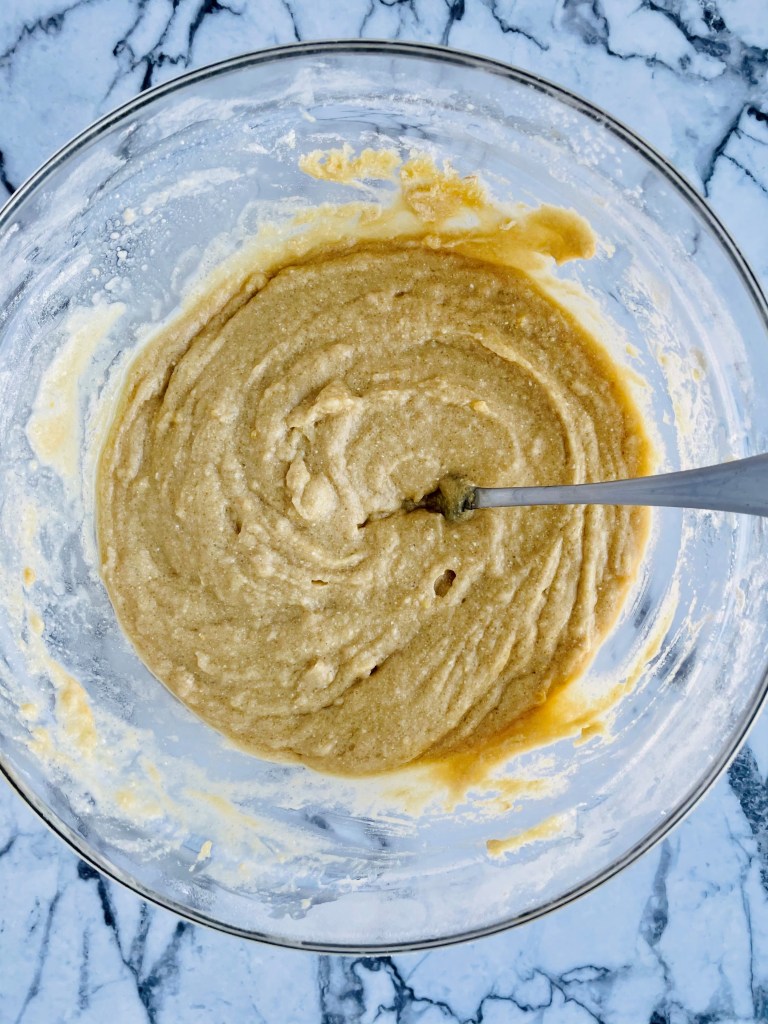 Next, fold in the blended chickpea mixture and give it all one last good stir(avoid over mixing).