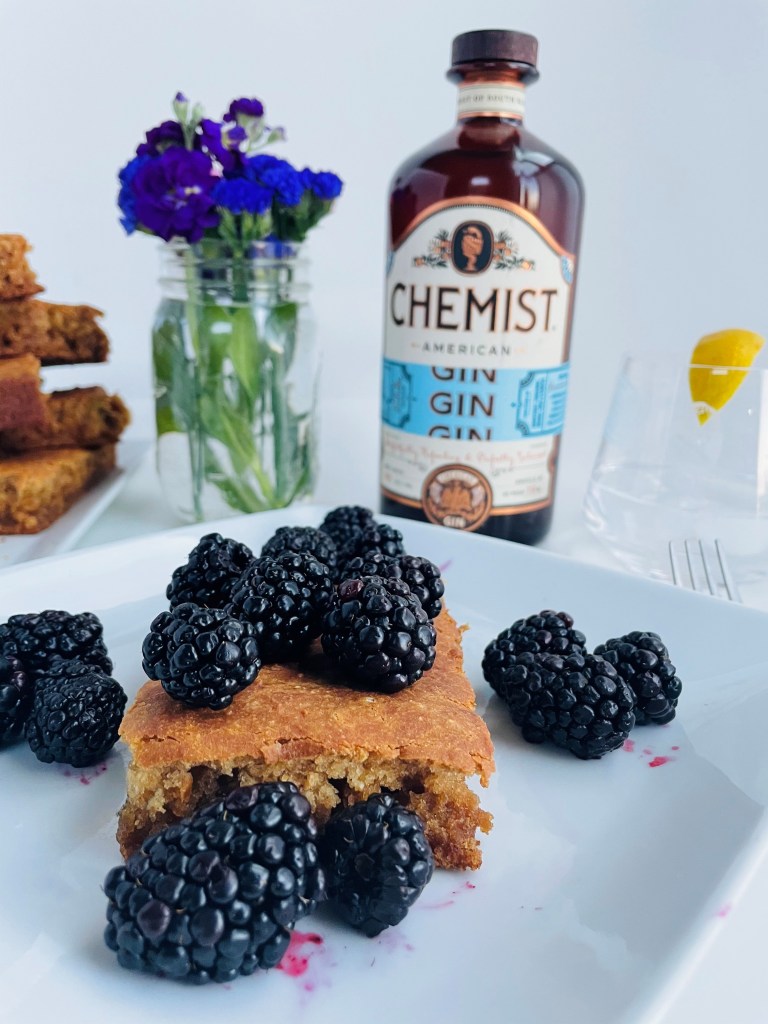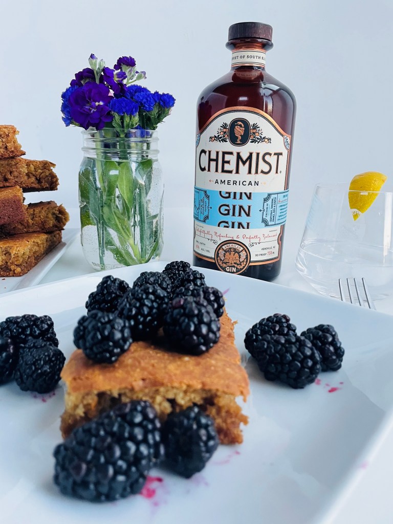 Similar to my black bean brownie recipe, these blondies took me by surprise about the fact that there were chickpeas in them, but it also felt great to know that they were a bit better for my body. They turned out with a bit more of a lighter and fluffier dessert than anticipated, but maybe next time I can add in some kind of nut butter to add more of a fudgy texture to them. Regardless, they were a killer time to make and I enjoyed every second of serving them up with fresh organic blackberries and a glass of my favorite local gin.