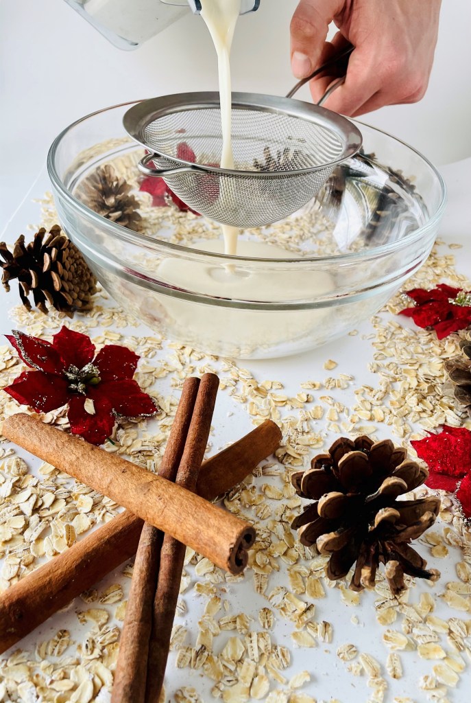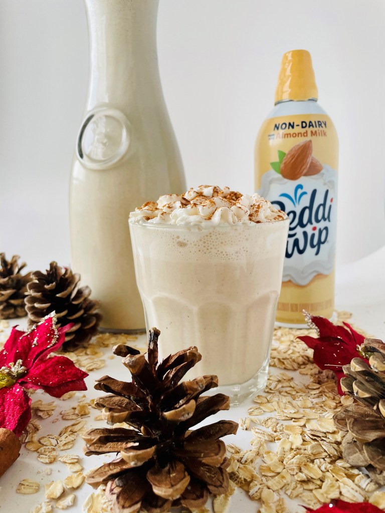 Just imagine – it’s Christmas Eve and you’re sitting around the fireplace watching your favorite holiday movie and enjoying some sweet treats, wondering what would hit the spot as a tasty refreshment to pair with them. This Holiday Nog created with mainly raw cashews and oats will complete the coziest night by adding in the seasonal spices of cinnamon and nutmeg with a smooth and creamy texture.
