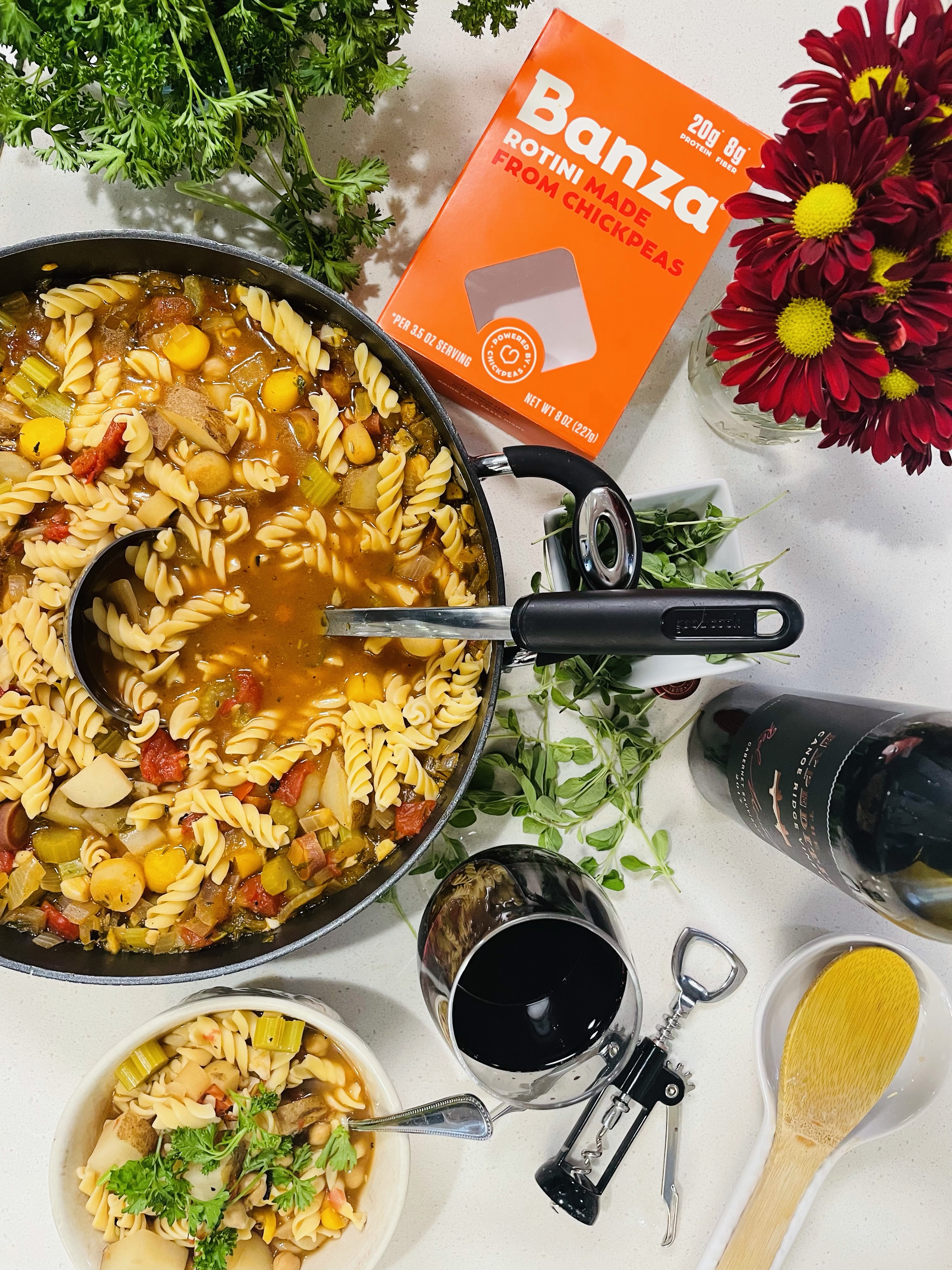 Plate the minestrone with freshly chopped Italian parsley and maybe even your favorite glass of wine!