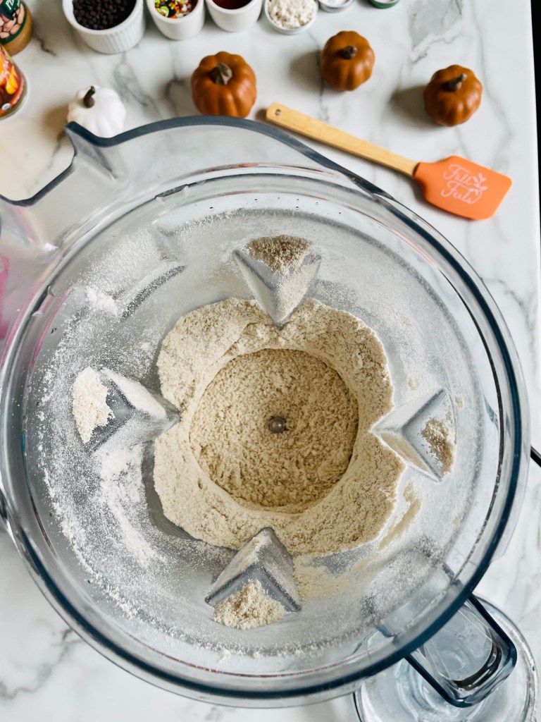 I started off this recipe by preparing the oat flour, which is simply blending a few cups of rolled oats into a flour-like consistency. Oat flour truly adds such a significant flavor in just about anything you bake with it, and it feels super cool to know you can make it right at home.