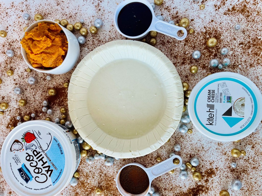 Using Kite Hill cream cheese as the base, I blended it up with a can of pumpkin puree`, So Delicious coconut whip, maple syrup, and a few dashes of cinnamon and nutmeg. After freezing the cheesecake for a few hours and letting it defrost in the refrigerator, it becomes easy to slice and serve up for any occasion. You could even get a little crazy and toss some ice cream on top! Regardless, I hope this recipe finds you well and you enjoy it as much as I do.
