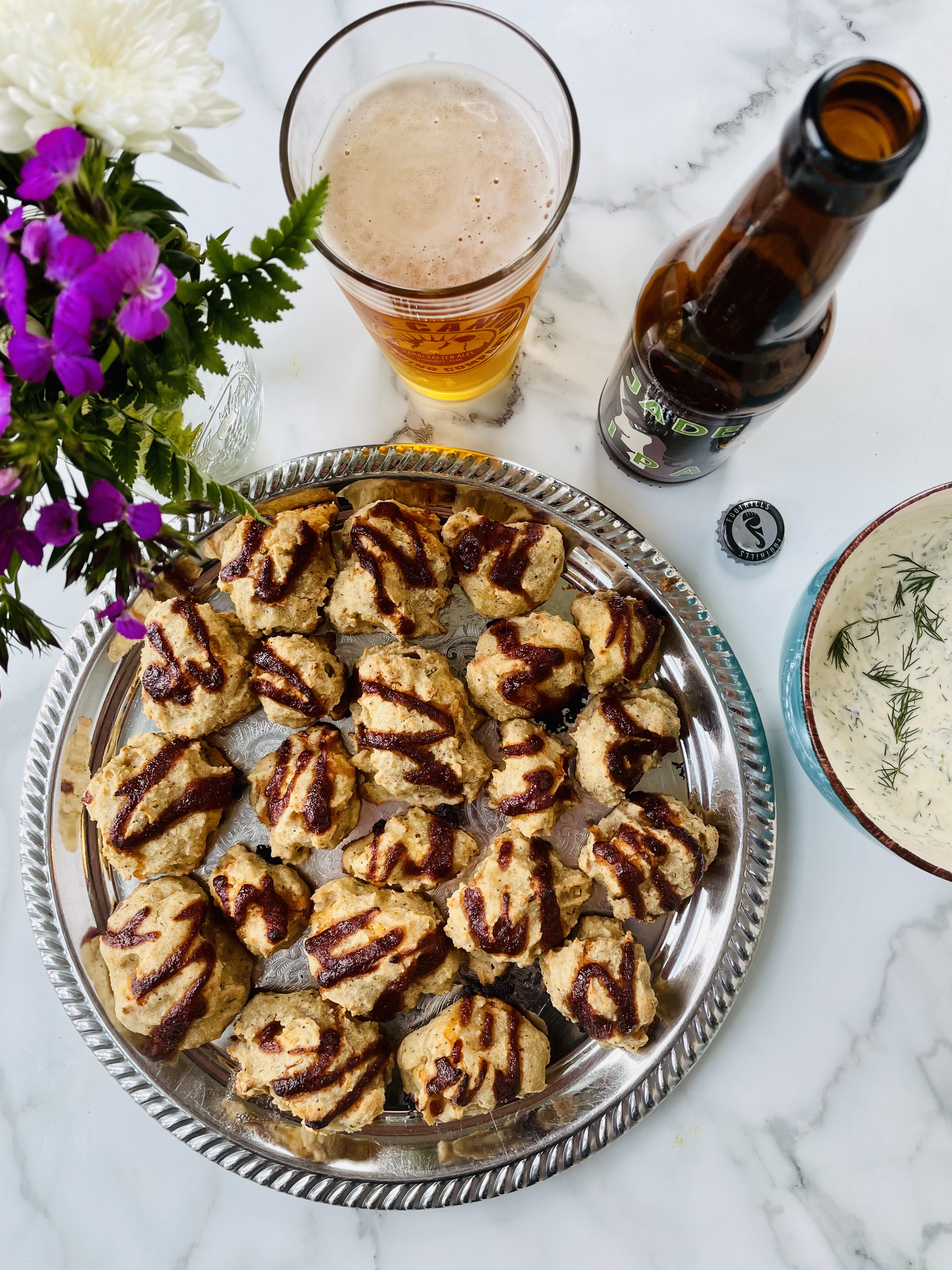 Baked and breaded cauliflower bites drizzled in BBQ sauce that make for the perfect party platter on any spring/summer occasion or holiday. Features a recipe for my cashew ranch dip and homemade coleslaw.