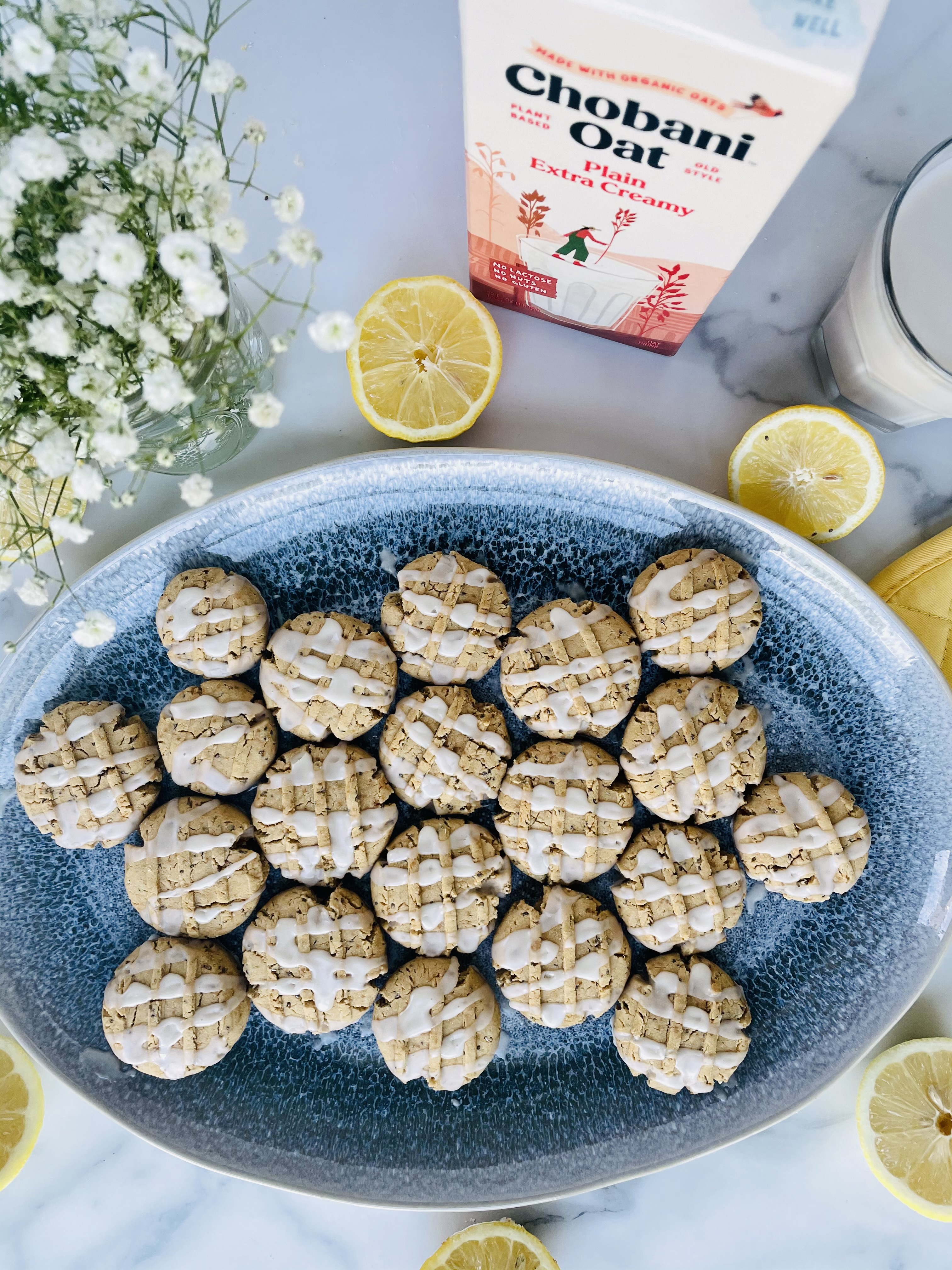Lemon flavored cookies drizzled with a homemade vanilla glaze making the perfect treat for your summer time party platter.