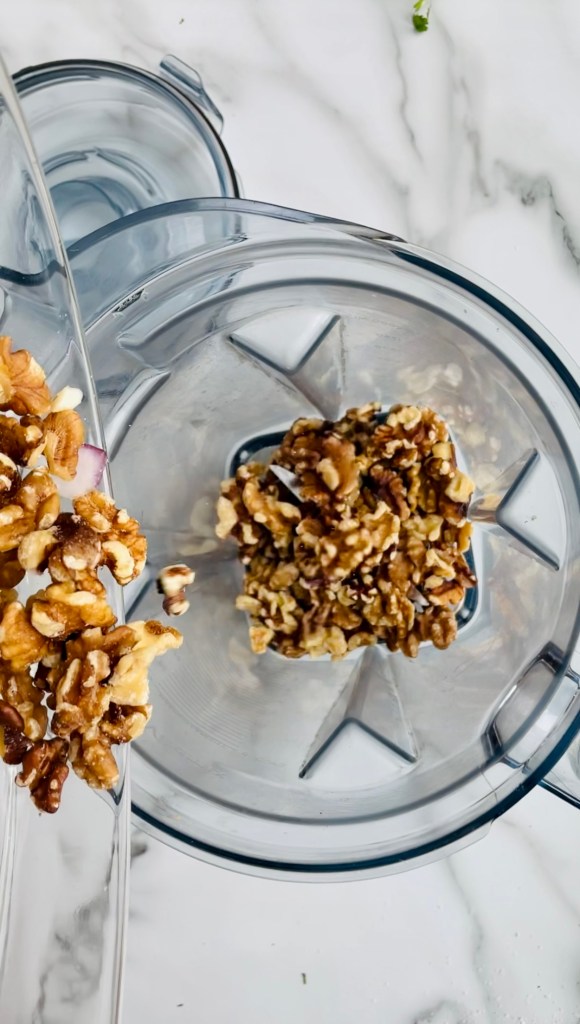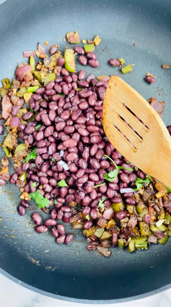 Toss in the black beans and allow to simmer once again while you prep the walnut mixture.