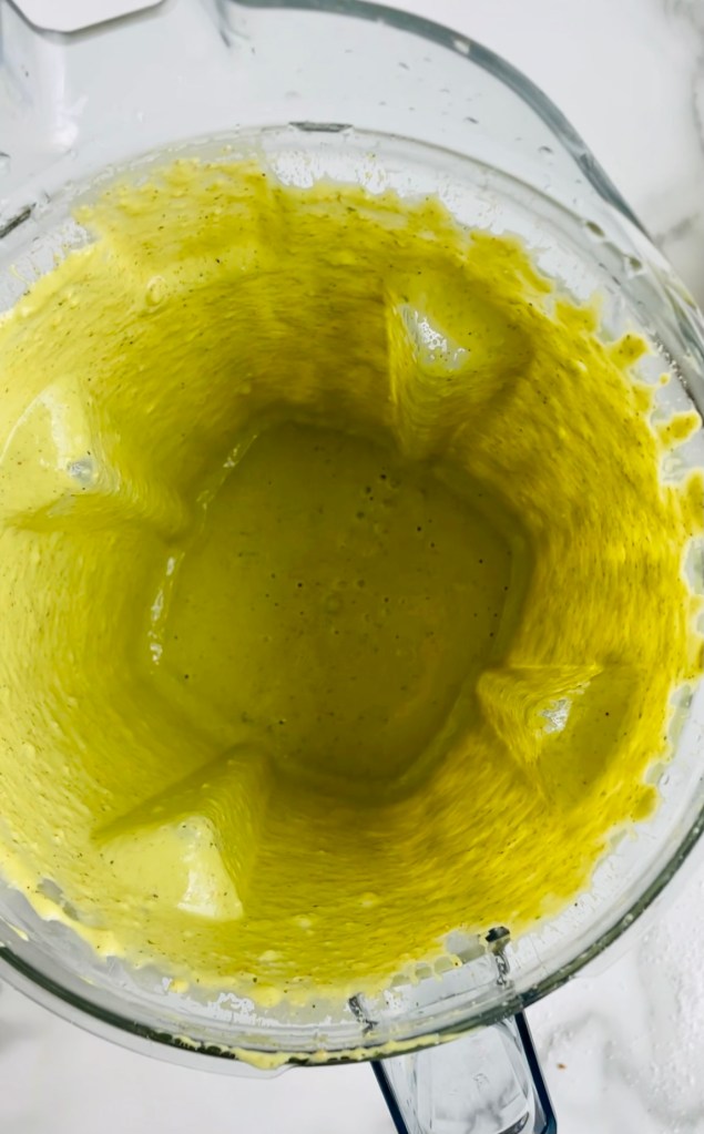 When fully soaked, you’ll notice they turn a bit of a white color. Fold them into the blender along with the oat milk, nutritional yeast, cilantro, cayenne pepper, salt, pepper, and the squeezed lime juice, then blend until you have a super creamy cashew sauce with the tiniest kick to it.